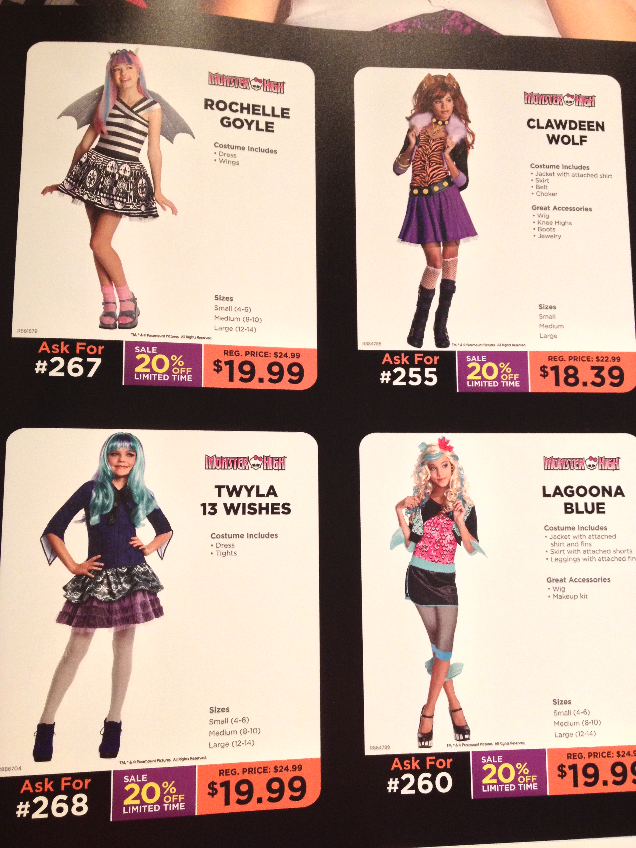 My daughters are big into Monster High and I look at it as a fun way for them to be their favorite character. Not as a sex symbol….. So do I agree that they are to racy? NO, I DON’T! Will I let my daughters continue to play and dress like a monster high? ABSOLUTELY YES!!!!