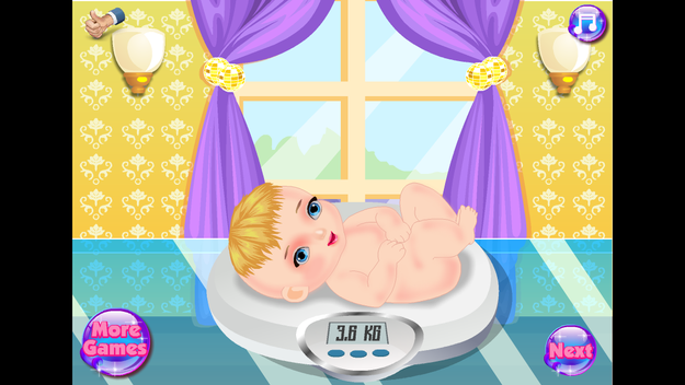The player then joins the baby in another room to weigh and swaddle it, while a modesty patch keeps anyone from noting the sex of the baby.