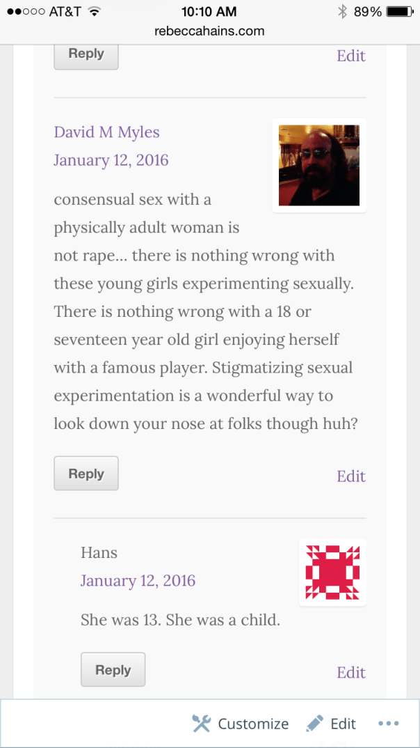 Here’s a thread from my latest blog post that exemplifies what rape culture looks like.