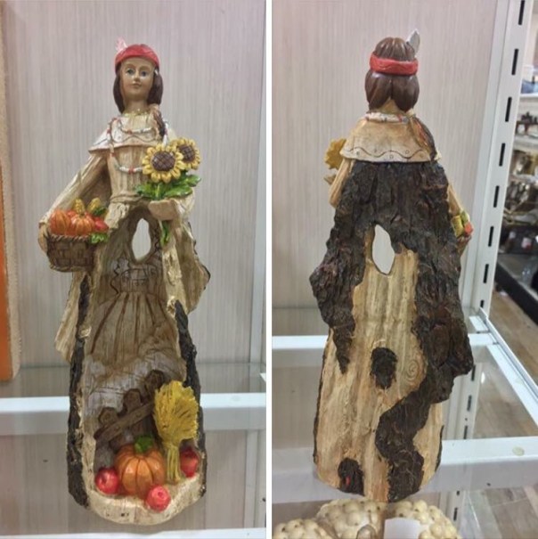 So, I would like to make a request of HomeGoods buyers: Please have more cultural sensitivity than this when selecting your fall / Thanksgiving decor offerings. The way this woman’s body is depicted is incredibly problematic, especially given the history of European settlers’ abuse of the native population.