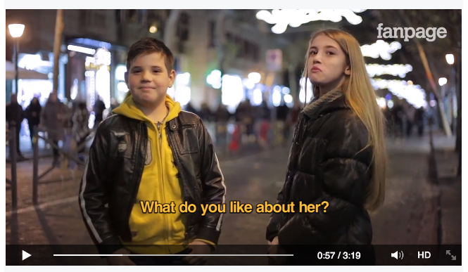 The video’s description asks, “What happens when you put a boy in front of a girl and ask him to slap her? Here is how children react to the subject of violence against women.”